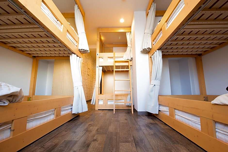 The quadruple room provides air conditioning, tatami, as well as a shared bathroom featuring a shower and a bidet. The unit offers 4 futons.